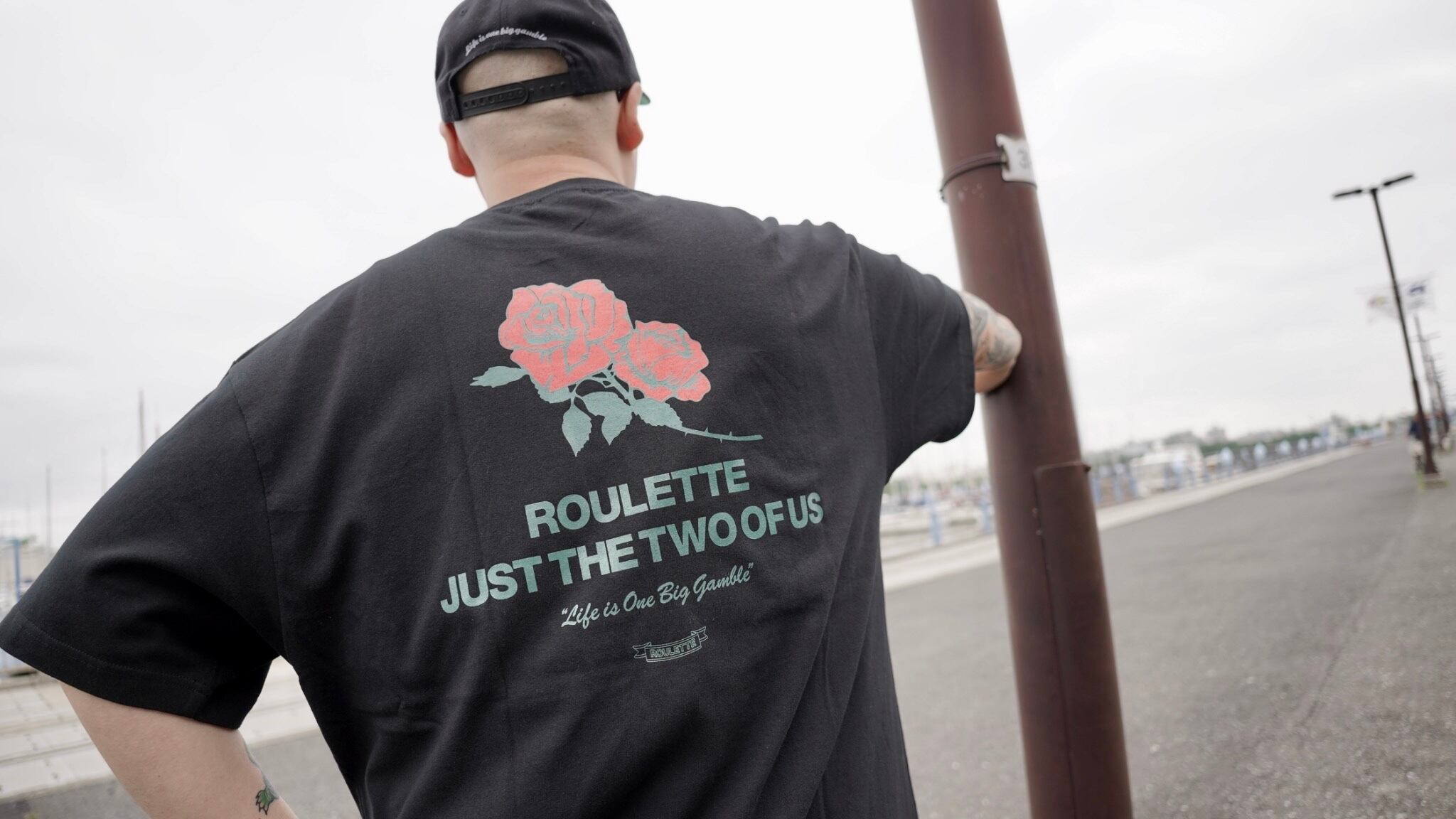 バックに2本の薔薇をデザインし、その下に『JUST THE TWO OF US』の文字を。